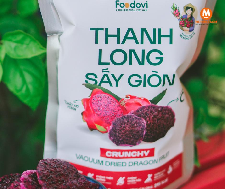 • Nguyên liệu sản xuất & Vùng nguyên liệu: Foodovi tự hào sử dụng Thanh Long Chợ Gạo, những trái thanh long đã đạt chứng nhận VietGAP này là sản vật nổi tiếng, đậm đà hương vị miền Tây, đặc trưng của Đồng bằng Sông Cửu Long để sản xuất snack trái cây sấy giòn hoàn toàn tự nhiên.