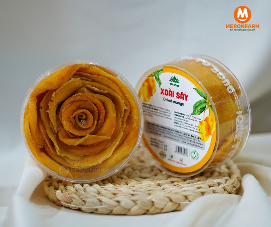 • Đặc điểm sản phẩm: Xoài có màu sắc tự nhiên, ít đường, vị tươi ngon. Được cuộn thành hình bông hoa rất đẹp.