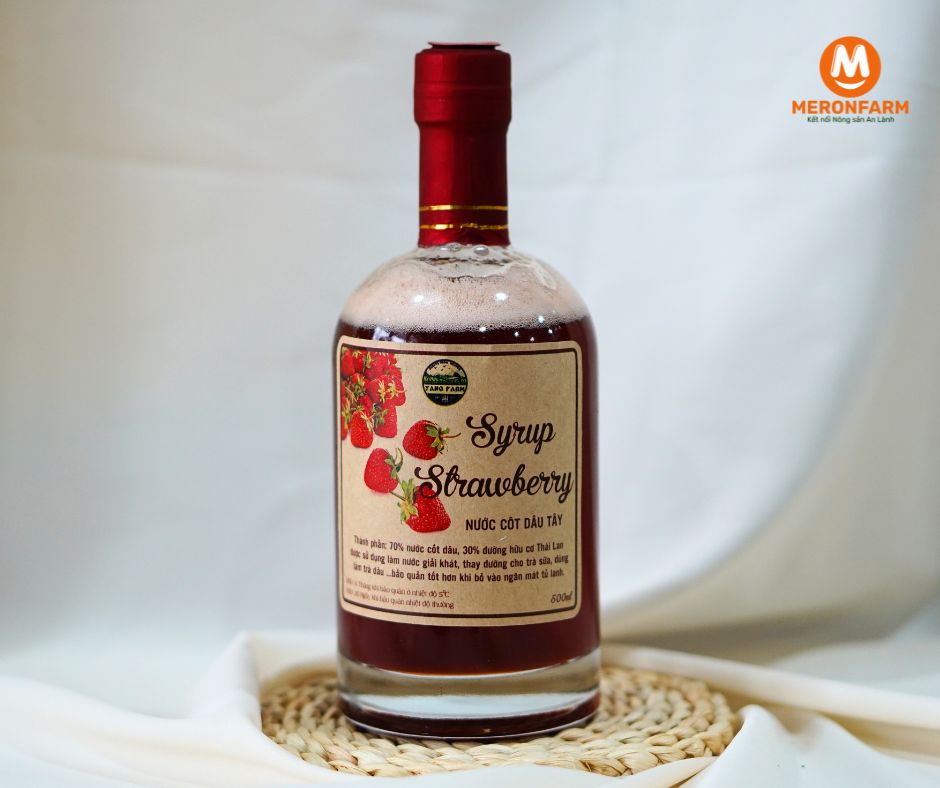- Dinh dưỡng & Lợi ích sức khỏe: Syrup dâu tây là nguồn cung cấp năng lượng nhanh chóng, giúp cải thiện tâm trạng và mang lại cảm giác sảng khoái. Cung cấp khoảng 5–10% nhu cầu vitamin C hằng ngày, hỗ trợ làn da khỏe mạnh, tăng cường hệ miễn dịch. Ngoài ra, lượng nhỏ chất chống oxy hóa trong syrup có lợi cho sức khỏe tim mạch. Quá trình nấu giúp giữ lại một phần dưỡng chất từ dâu tây, tuy nhiên, một số chất sẽ bị hao hụt do nhiệt độ cao.