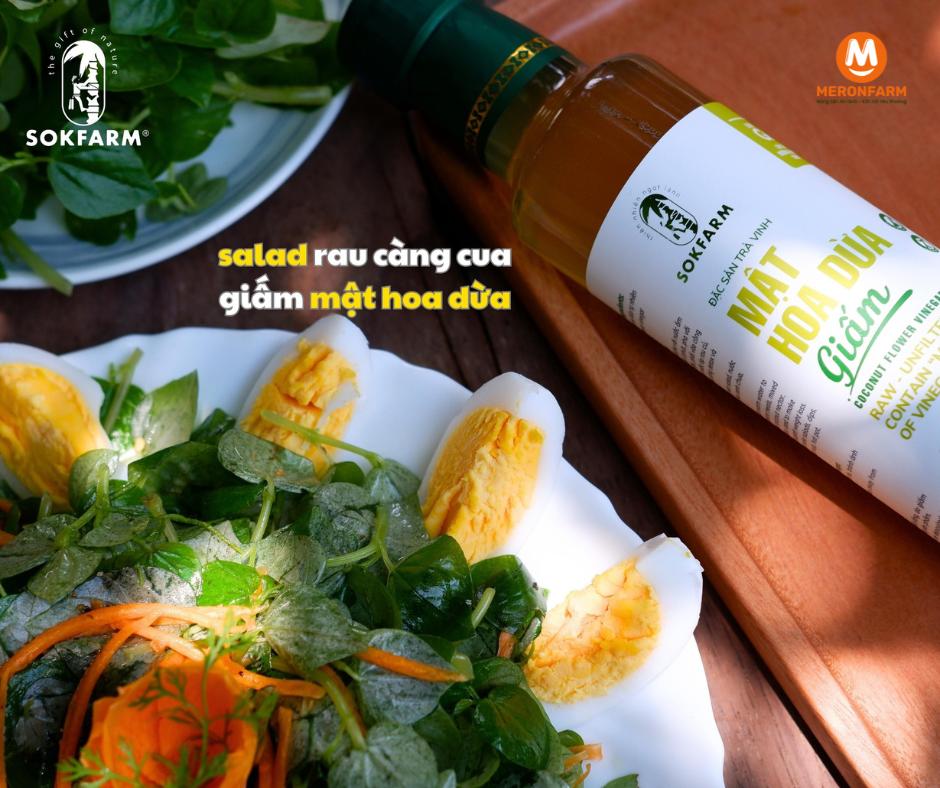- Nguyên liệu sản xuất & Vùng nguyên liệu: Chế biến từ mật hoa dừa của Sokfarm ở Trà Vinh kết hợp giấm cái tự nhiên.