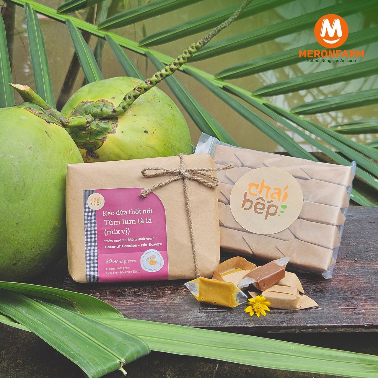KẸO DỪA THỐT NỐT TÙM LUM TÀ LA CHÁI BẾP - Mix 4 vị /Gói 40 viên